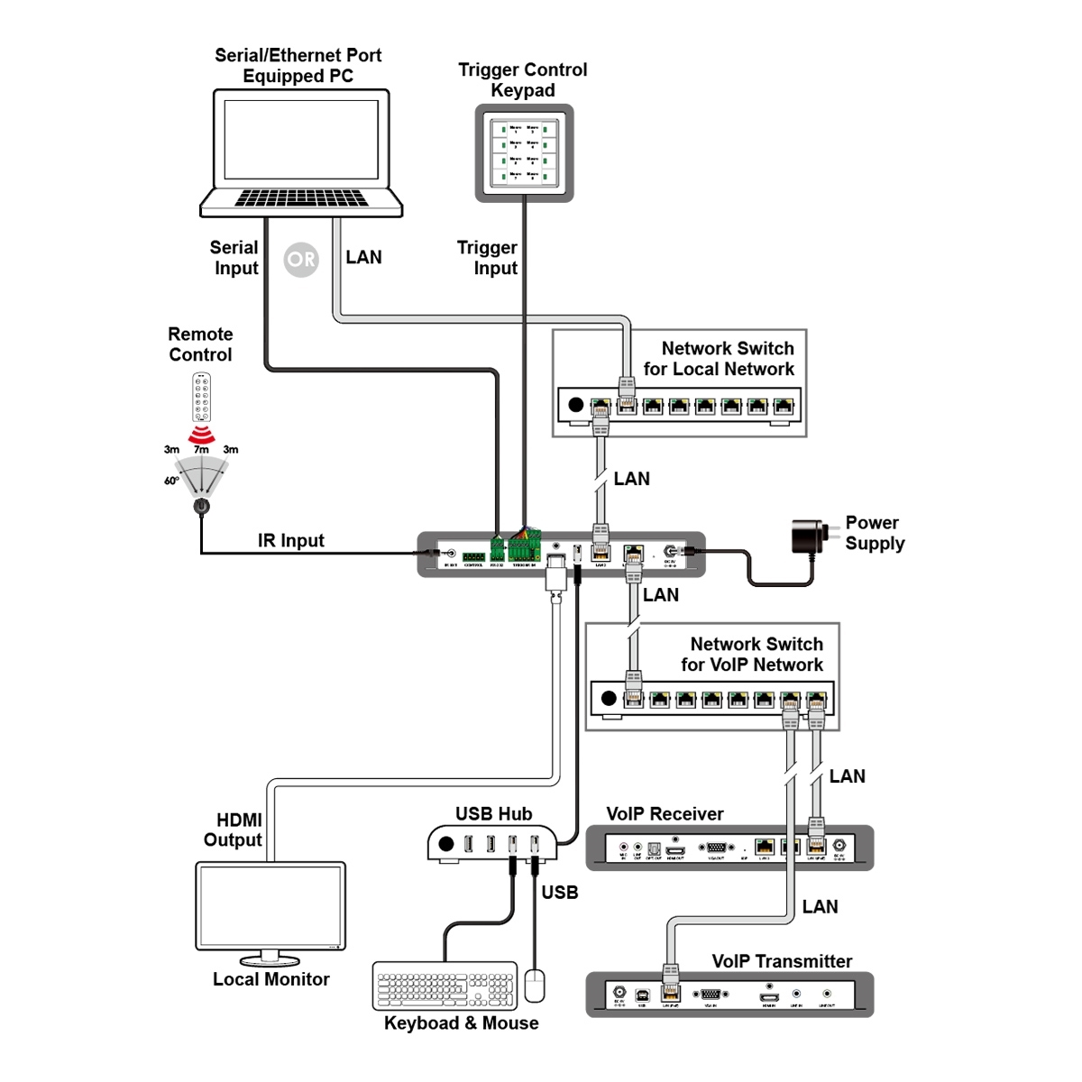 CDPS-CS8-S – контроллер для управления IP-передатчиками / приемниками Cypress, использующих технологию SDVoE для приема-передачи видео или KVM (USB и/или AV-сигналов), с поддержкой «виртуальной матрицы». Способен работать с видео разрешением до 4К60. Может работать как главный контроллер помещения, 8 триггерных входов. Питание по PoE или от внешнего блока. Управление осуществляется при помощи «сухих» контактов, по ИК, RS-232 и IP (web-интерфейс и Telnet), по USB с помощью HID-устройств (клавиатура, мышь и др.).
