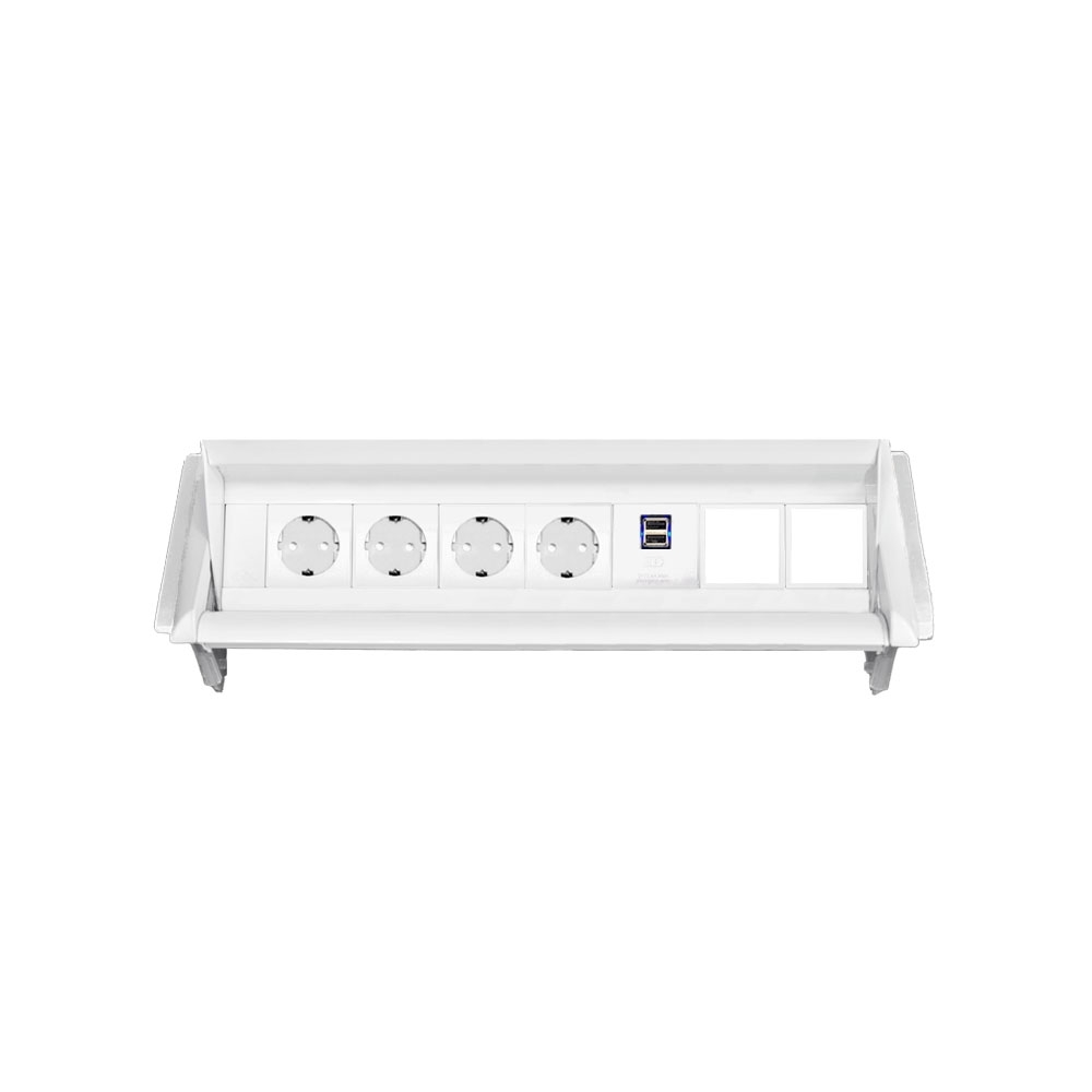 Встраиваемая розеточная станция серии Aero Flip с 4 розетками и 2xUSB-A, белая
