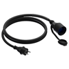 CAB465/5-F – силовой удлинитель доступной серии Basic на основе кабеля H07RN-F3G2.5 сечением 3х2,5 кв.мм с неопреновой оболочкой, оконцованный разъемами SCHUKO, Франция, тип E (вилка-розетка). Кабельная розетка снабжена крышкой. На кабель надета прозрачная пластиковая трубка для защиты от изломов. Длина кабеля 5 м. Цвет черный.