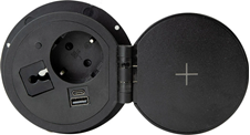 Встраиваемый розеточный блок с 1 силовой розеткой, 1 беспроводной зарядкой, 1xUSB-A, 1xUSB-C и 1 кабель-каналом, черный