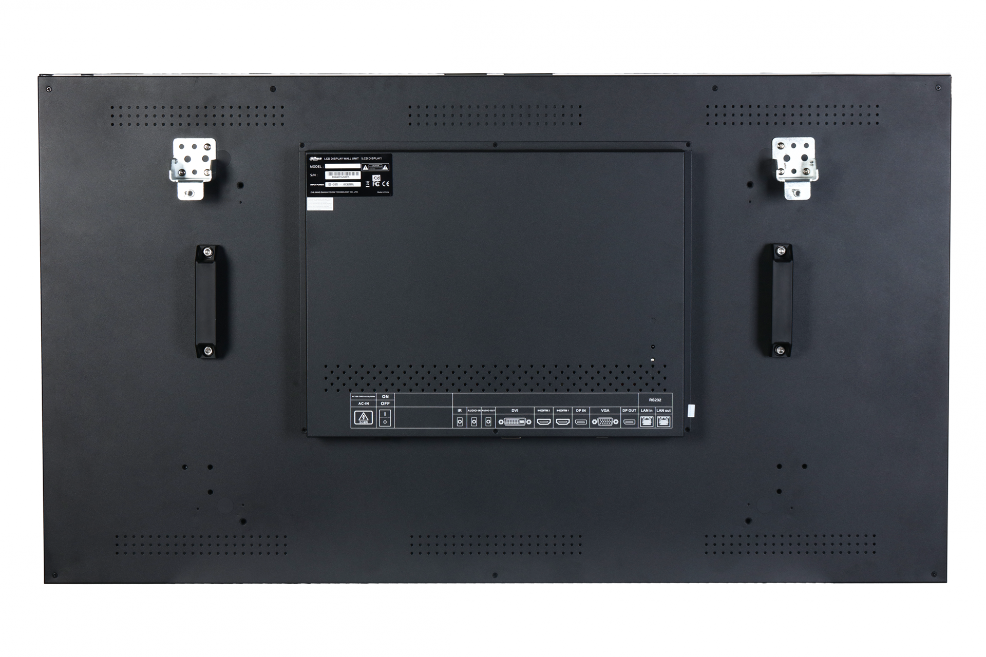DHI-LS550UCM-UF – ЖК-дисплей с LED-подсветкой диагональю 55" для построения видеостен. Поддерживает разрешения до 1080p и использует матрицу ADS. Соотношение сторон 16:9. Угол обзора: 178x178°. Яркость: 500 кд/м². Оборудован входами HDMI, DisplayPort, VGA и DVI-D, выходом DisplayPort. Есть акустические входы и выходы, а также порты ИК, RS-232. Для крепления предусмотрены монтажные отверстия стандарта VESA 600×400. Ширина шва: 2,3 мм (сверху и слева) и 1,2 мм (справа и снизу).