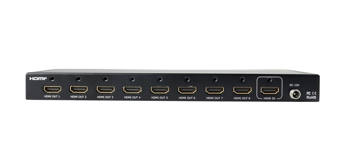 DXP H0108 – усилитель-распределитель 1:8 сигналов HDMI 2.0. Позволяет распределить сигнал с источника на восемь выходов одновременно. Поддерживаются сигналы разрешением до 4К60. Совместимость с HDCP 2.2.