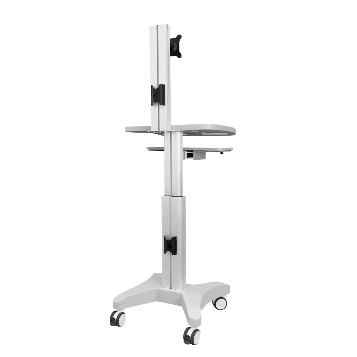 Напольная мобильная стойка для монитора диагональю 10–24" и полками, нагрузка до 65 кг, серебристая