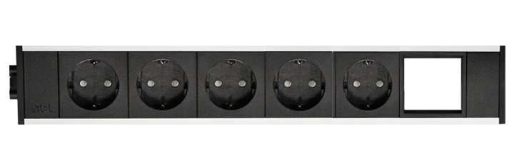 Розеточная станция серии Link с 5 розетками, 2xUSB-A и 2 слотами для IMP, черная с серебристым