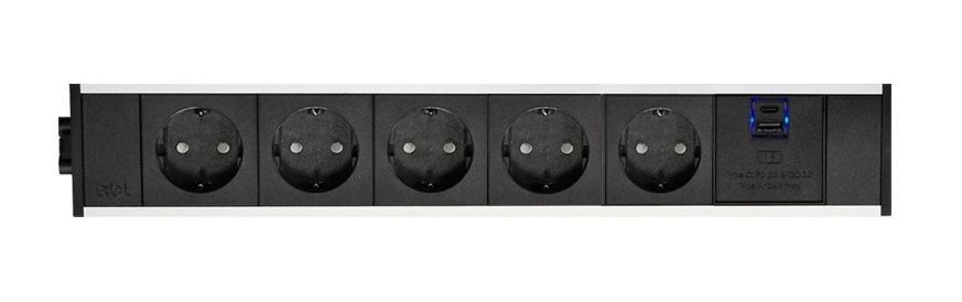 Розеточная станция серии Link с 5 розетками, 1xUSB-A, 1xUSB-C, черная с серебристым (2M200503)
