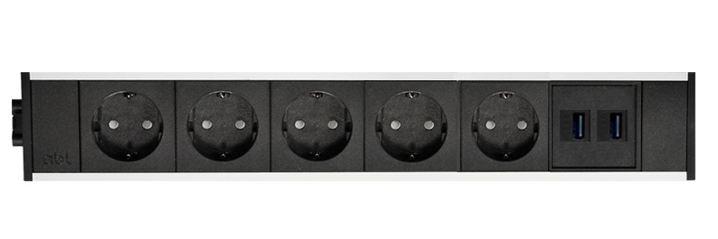 Розеточная станция серии Link с 5 розетками и 2xUSB-A, черная с серебристым (2M200508)