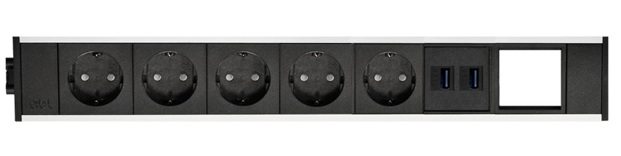 Розеточная станция серии Link с 5 розетками, 2xUSB-A и 1 слотом для IMP, черная с серебристым (2M200509)