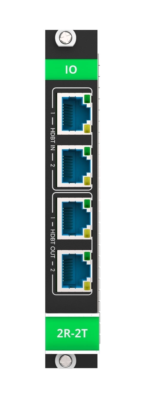 MC3-2R-2T — модуль с двумя входами и двумя выходами HDBaseT 3.0, предназначенный для использования в составе шасси совместимого мультиформатного модульного матричного коммутатора. Модуль MC3-2R-2T может устанавливаться в любой из слотов шасси матричного коммутатора. Входные сигналы модуля независимо переключаются на любой выход модульного матричного коммутатора, а любой сигнал на входе матричного коммутатора независимо переключается на любой из двух масштабируемых выходов модуля.