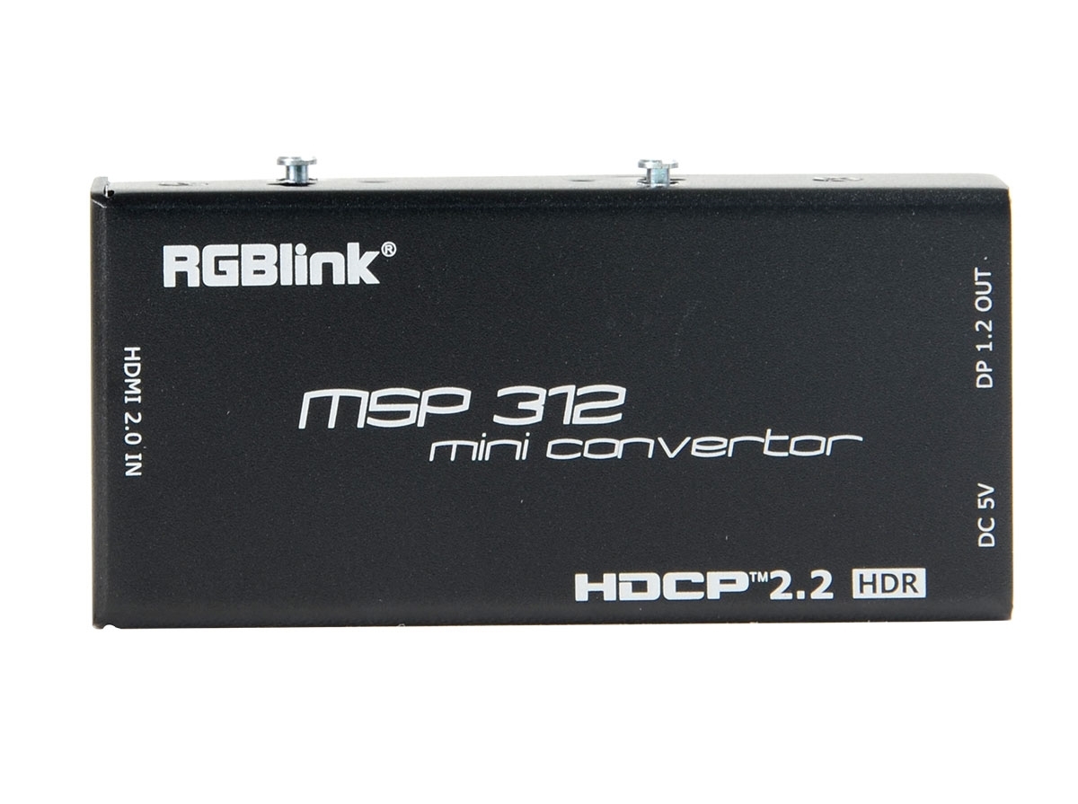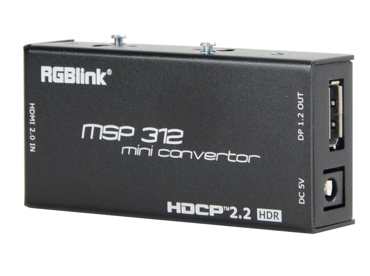 MSP 312 – преобразователь видеосигнала HDMI 2.0 в DisplayPort 1.2. Поддерживает сигналы разрешением до 4K60 (4:4:4). Соответствие HDCP 2.2.