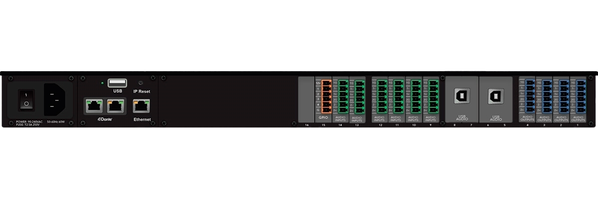 Комплект: DSP-аудиопроцессор, 12 микрофонных/линейных входов, 8 выходов (Euroblock), модуль Dante 64х64