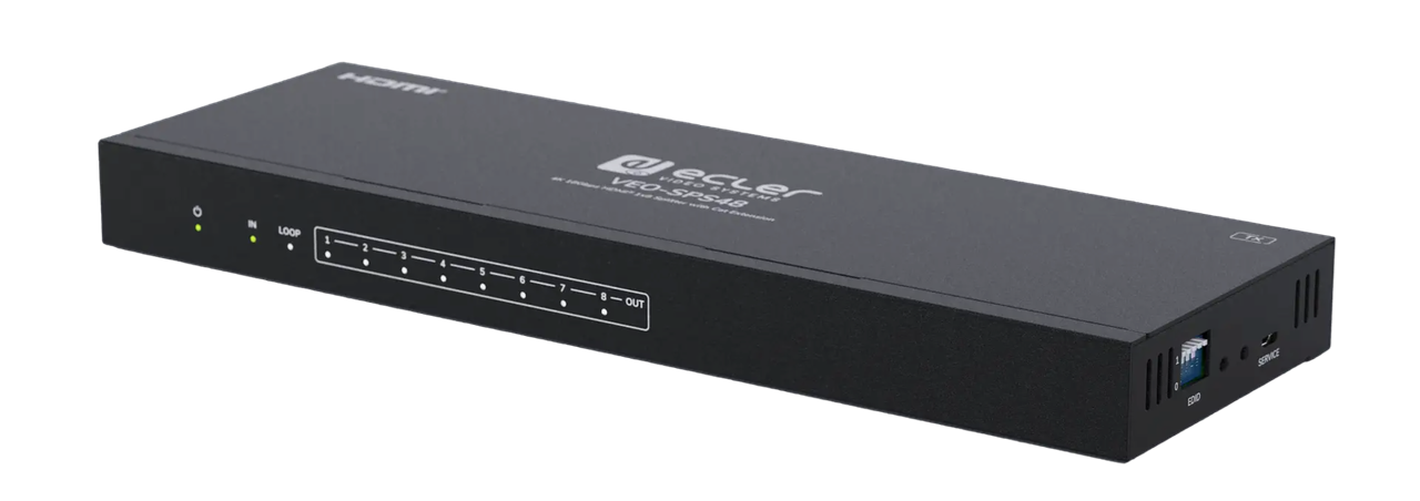 VEO-SPS48 — распределитель сигналов HDMI по витой паре с поддержкой разрешений до до 4K60 (4:4:4). Оборудован одних входом HDMI, одним петлевым выходом HDMI и восемью выходами витой пары. Позво-