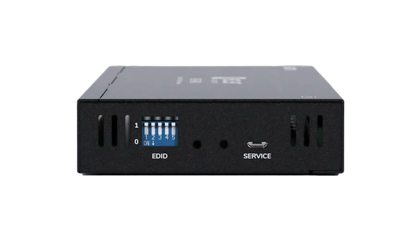 ляет передавать сигнал на расстояние до 35 м для 4K/60 Гц, 50 м для 4K/30 Гц или 60 м для 1080p по одному кабелю категории Cat 5e или выше. Поддерживает однонаправленную передачу ИК-сигнала управления, извлечение небалансного стереоаудио через разъем Euroblock и управление EDID-данными. Оборудован последовательным интерфейсом управления RS-232.