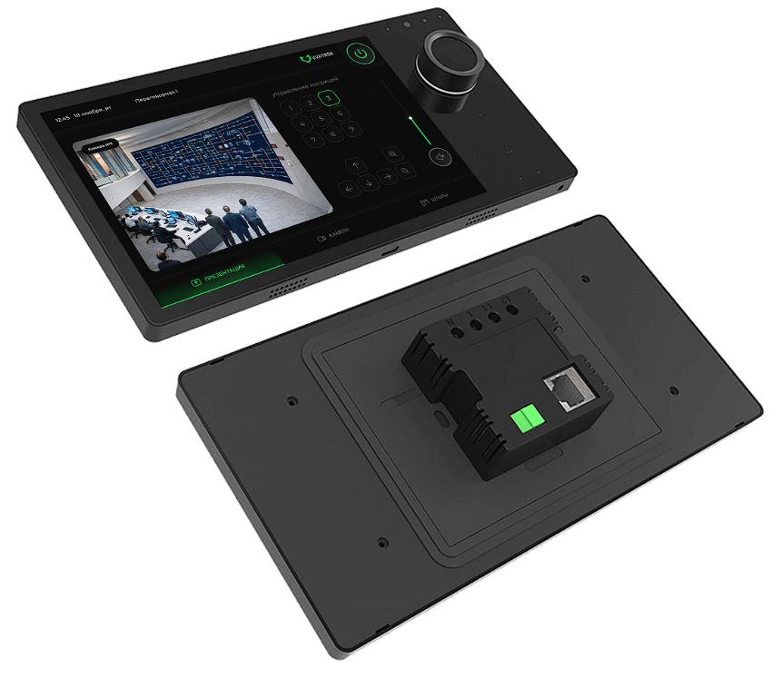 08T8E – встраиваемая сенсорная панель управления, оборудованная 8'' дисплеем. Используется для управления ProAV системами, аудио-видео оборудованием и IoT устройствами. Работает под управлением ОС Android 8.1. Разрешение дисплея: 1280x800. Для подключения может использоваться только Wi-Fi. Доступно питание по PoE.