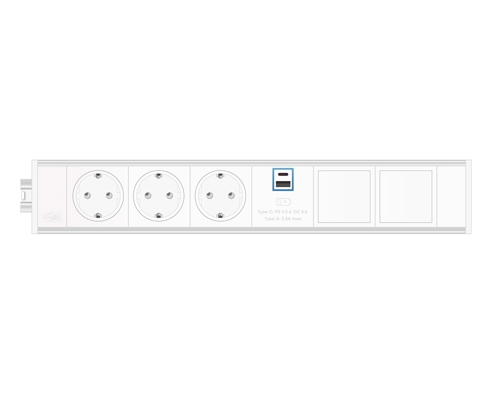 Розеточная станция серии Link с 3 розетками, 1xUSB-A, 1xUSB-C и 2 слотами для IMP, белая с серебристым