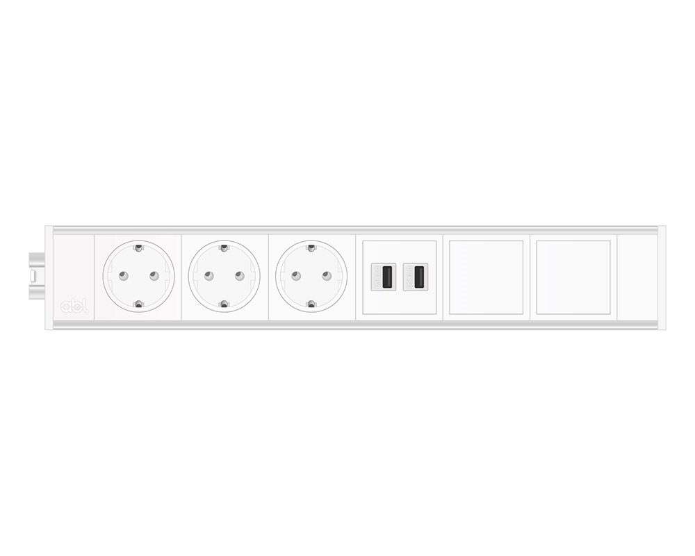 Розеточная станция серии Link с 3 розетками, 1xUSB-A, 1xUSB-A и 2 слотами для IMP, белая с серебристым (2M210310)