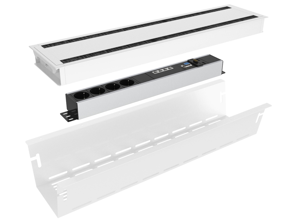 Розеточная станция серии Axessline с лючком, розеточный блок 935-T5UD (5 розеток, 2xUSB-питание, 1xHDMI, 4xRJ45, 2xUSB), белая