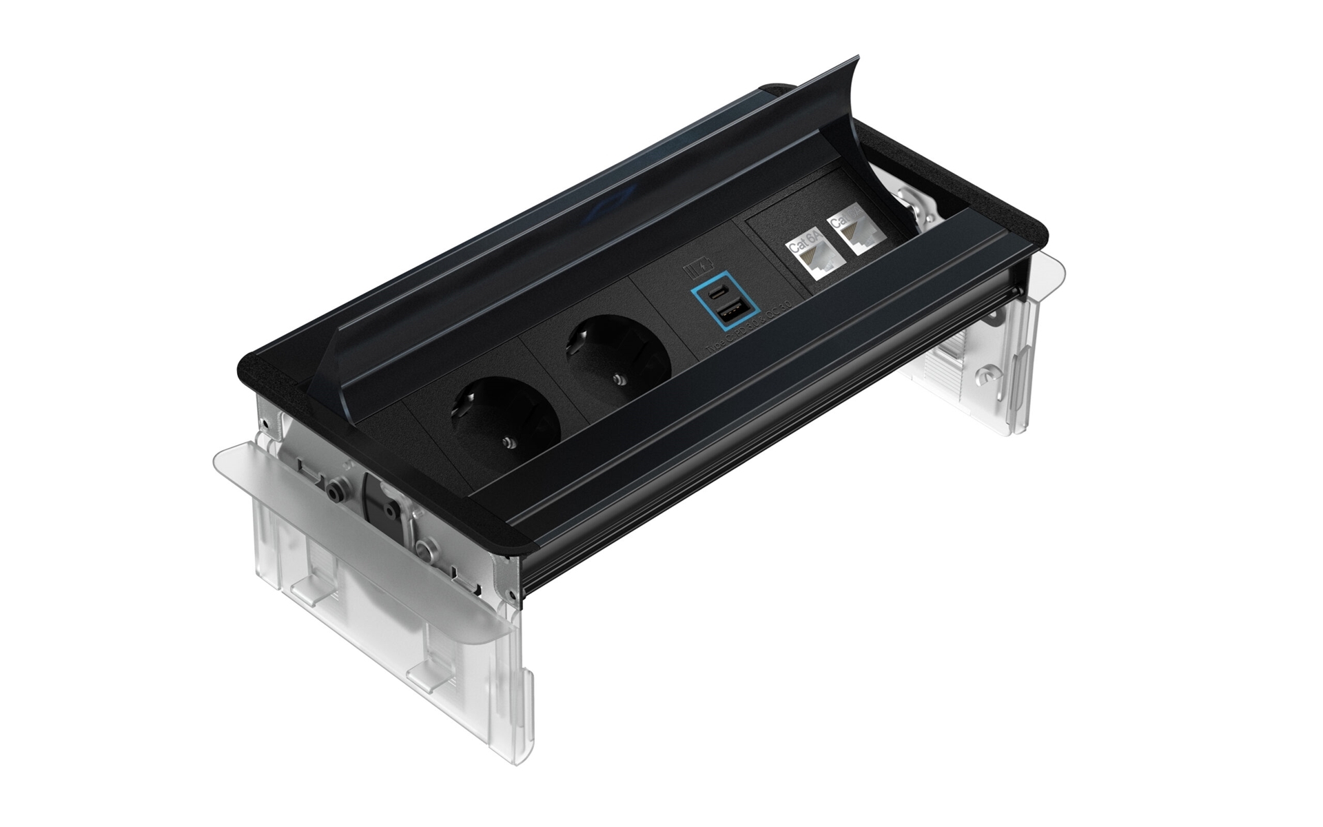 Встраиваемая розеточная станция Aero Flip-S с 2 розетками, 1xUSB-A, 1xUSB-C и 1 слотом для IMP, черная