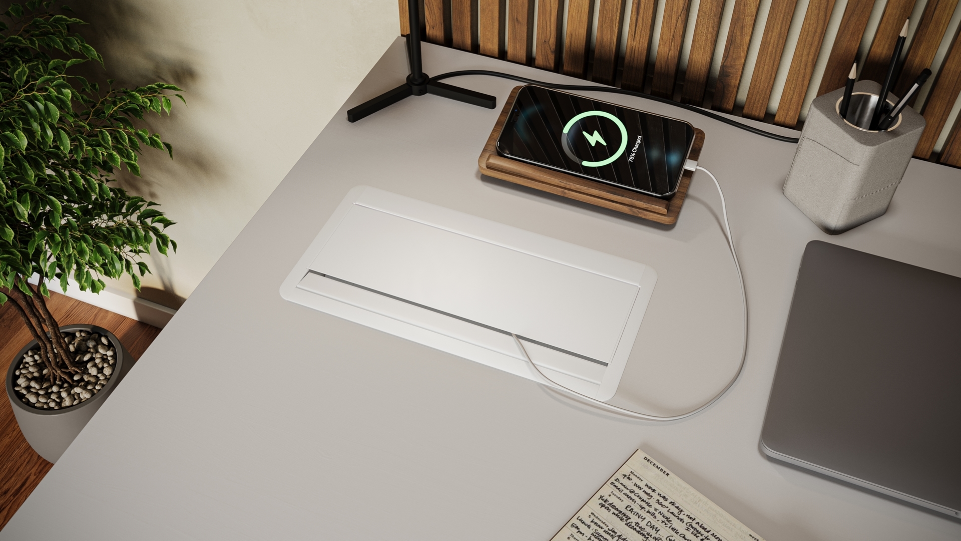 Встраиваемая розеточная станция Aero Flip-S с 2 розетками, 1xUSB-A, 1xUSB-C и 1 слотом для IMP, белая