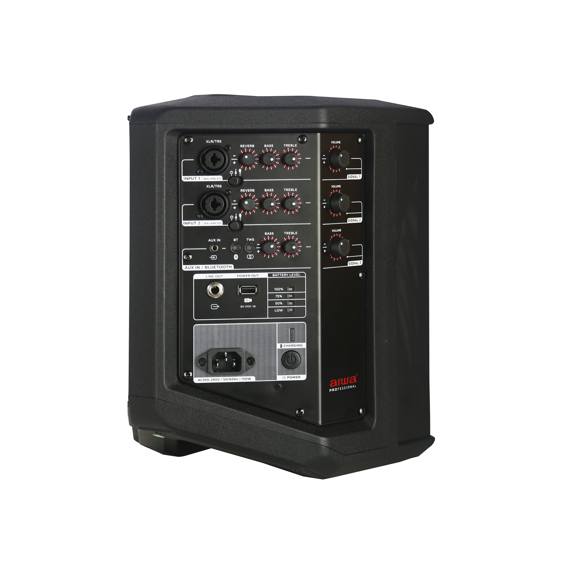 AX-1PRO – переносная двухполосная активная акустическая система с 6,5'' НЧ-динамиком и тремя 2,75" ВЧ-динамиками. Оснащена двумя универсальными балансными входами Combo, дополнительным входом AUX, встроенным усилителем и DSP-процессором. Максимальный уровень звукового давления: 106 дБ (1 м). Номинальная мощность составляет 100 Вт. Частотный диапазон: 60 Гц – 20 кГц. Поддержка Bluetooth с TWS (True Wireless Stereo — беспроводная технология, позволяющая объединить два громкоговорителя в одну стереосистему). Прием аудио от устройств с операционными системами Windows, Android, iOS. Есть отверстие для крепления на штангу. Получает питание от аккумулятора, длительность работы на максимальной громкости до 4 ч. Время полной зарядки: 3 часа.