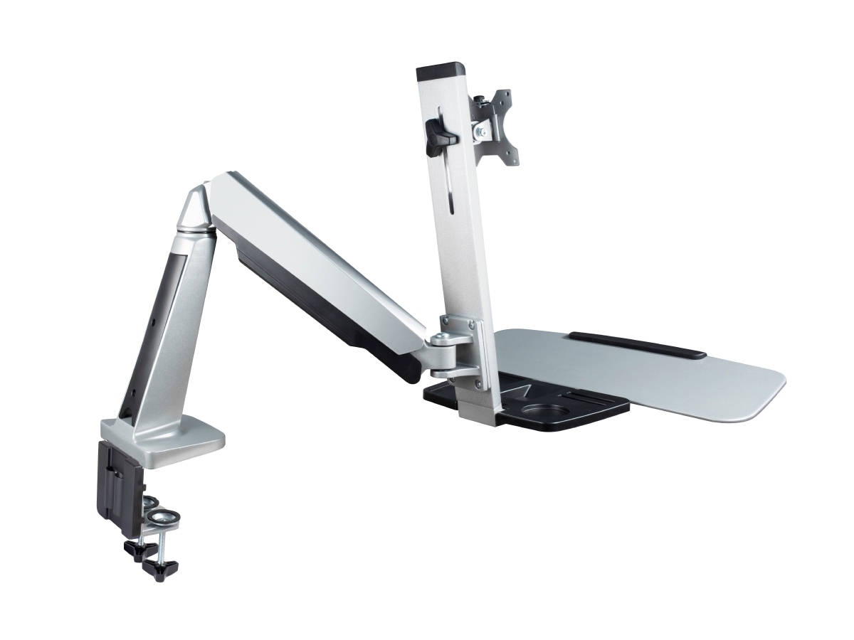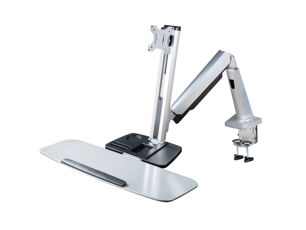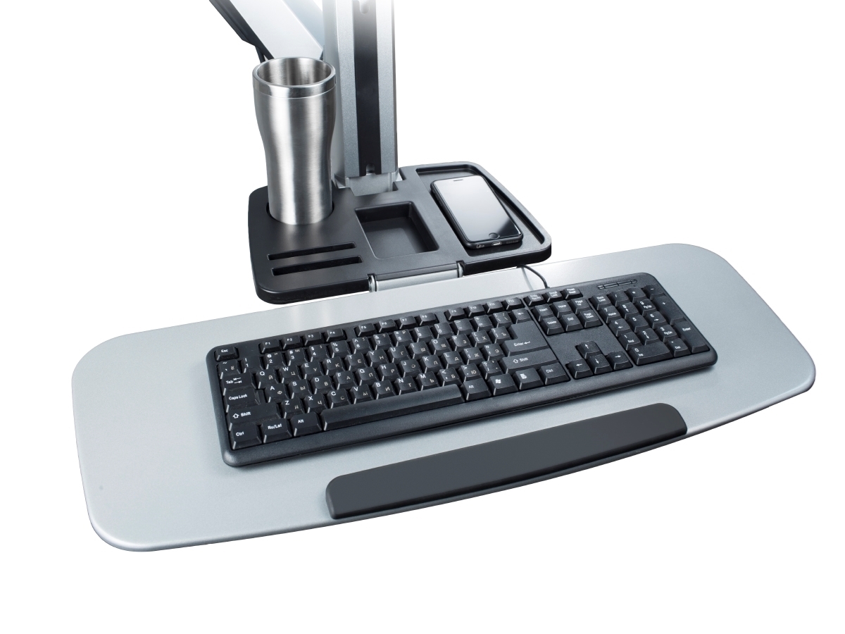 Настольное рабочее место для монитора диагональю 13–32'', органайзер, полка под клавиатуру, макс. нагрузка 8 кг, серебристое