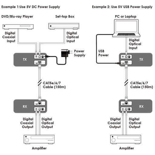 Передатчик цифрового аудиосигнала (S/PDIF, TOSLINK) по витой паре до 150 м