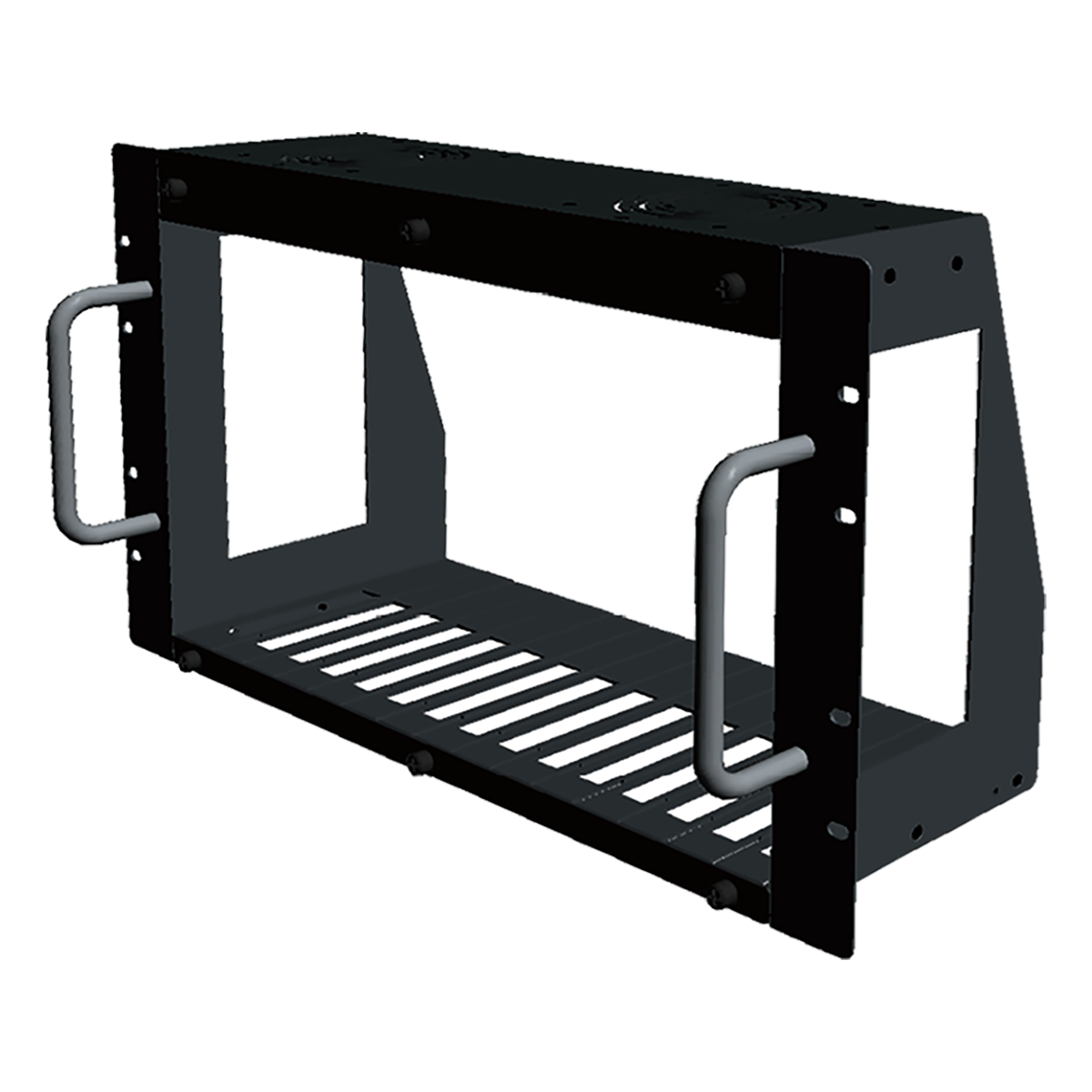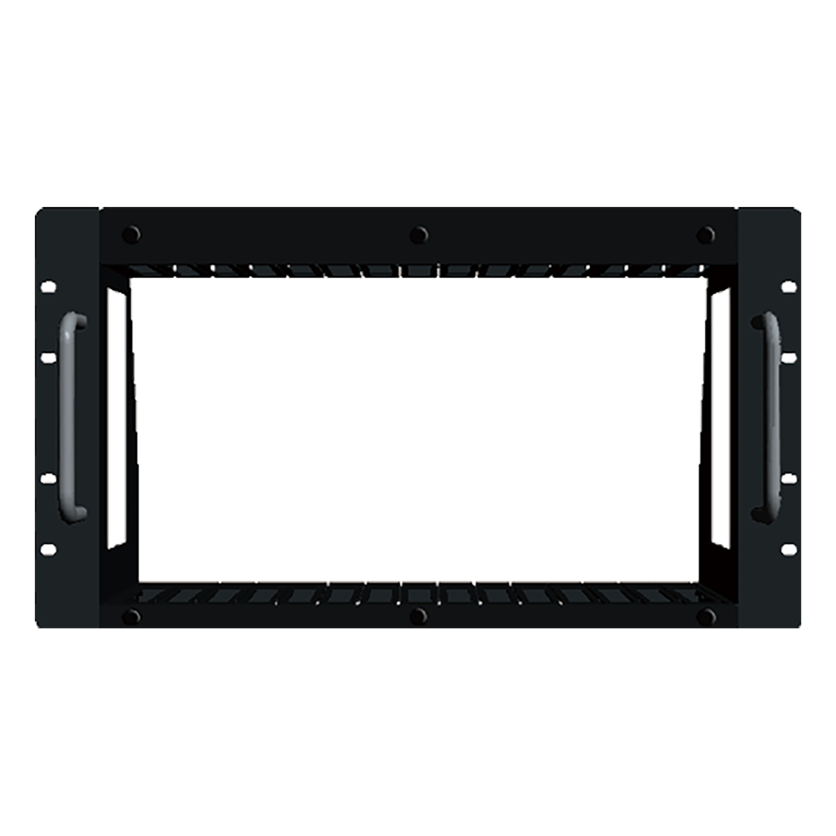 CSR-G6100 – шасси на 15 модулей для группового монтажа в рэковую стойку малогабаритного AV-оборудования, высота 6U. Устройство применяется для организованного монтажа разнообразных слаботочных приборов. Шасси поставляется вместе с блоком питания, вентилятором, разъемом питания и набором винтов.