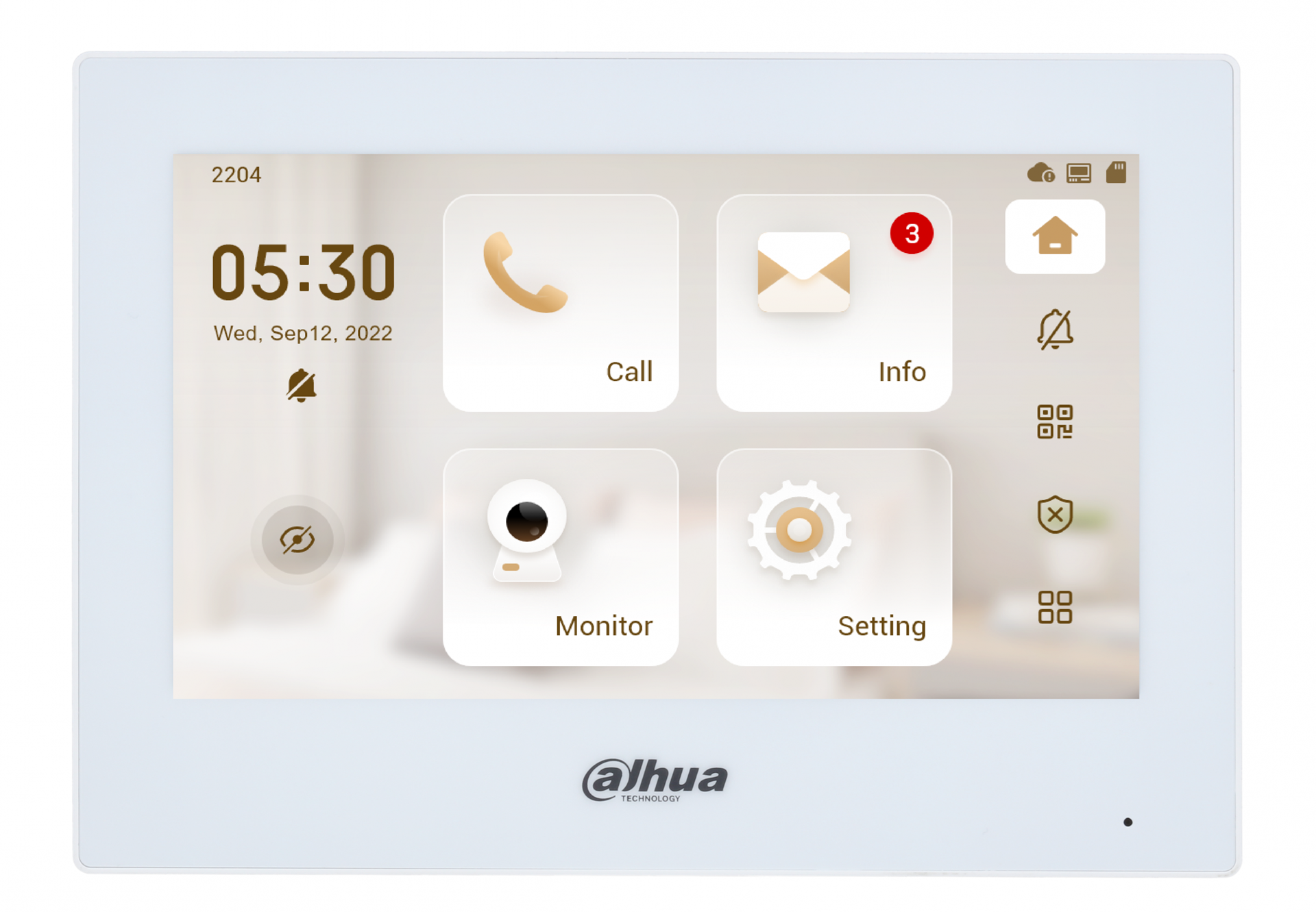Видеодомофон с 7" сенсорным дисплеем разрешением 1024х600, Wi-Fi, 6 тревожных входов и 1 выход, Ethernet-порт