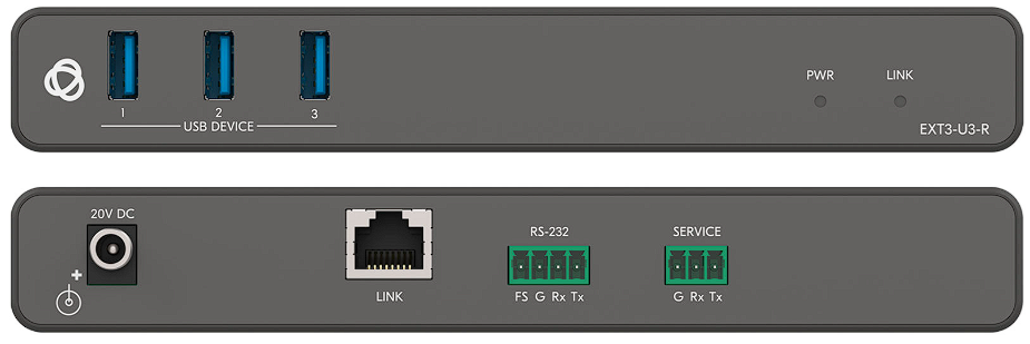 EXT3-U3-R — приемник USB 3.2 Gen1 по кабелю витой пары с поддержкой двустороннего питания PoC. Прибор получает основанный на формате HDBaseT сигнал CATx по кабелю медной витой пары от совместимого передатчика и преобразует его в исходные сигналы USB 3.2 Gen1, а также сигналы управления RS-232. Устройство работает по принципу Plug&Play и не требует какой-либо предварительной настройки. Прибор поддерживает широкий спектр периферийных устройств USB, а также все режимы передачи USB, включая прерывание, массовый и изохронный, и особенно подходит для USB-устройств с высокой скоростью передачи видеопотока, таких как камеры и устройства захвата.