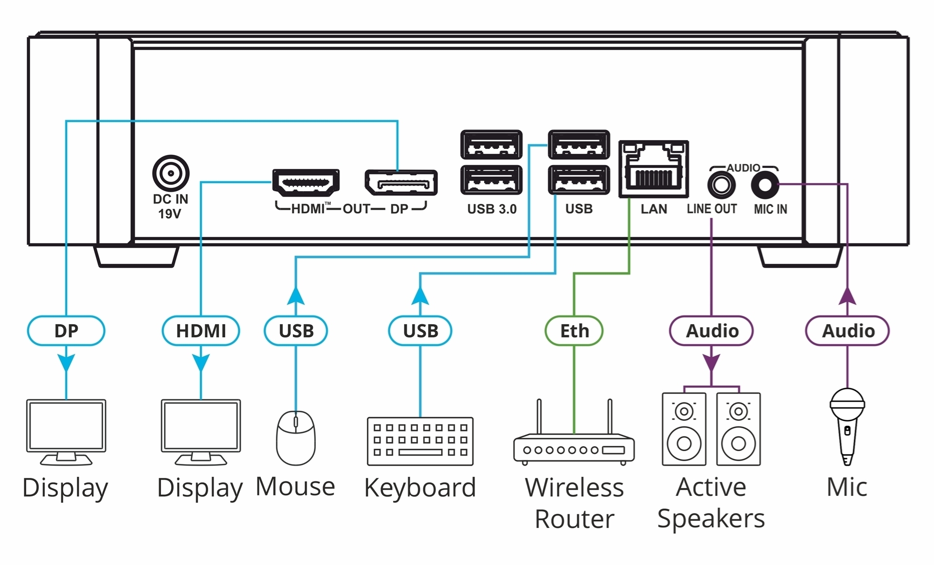 KC-ON PREM – автономный контроллер помещений и AV-систем. Не требует подключения к интернету, может работать исключительно в локальной сети. Поставляется с предустановленными программами Builder и Manager для управления рабочими пространствами, создания и модификации проектов, сохранения типовых и промежуточных конфигурации пространств. Имеет 1 порт Ethernet, 5 портов USB, 1 микрофонный вход и выходы HDMI, DisplayPort и небалансного аудиостерео.