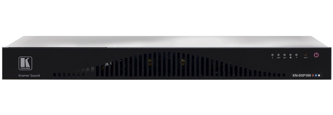 KN-DSP100 – сетевое устройство для управления и маршрутизации до 64-х каналов Dante, имеются 4 порта USB-интерфейса. Есть возможность подключения манипулятора «мышь» и клавиатуры, выход VGA для подключения дисплея. Для удаленного управления можно использовать интерфейсы RS-232 и Ethernet (RJ45).