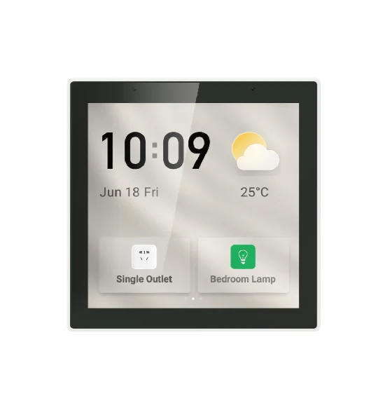 Настенная / Настольная панель 4 дюйма (un-04t6e) – сенсорная встраиваемая панель управления, оборудованная 4'' дисплеем. Работает под управлением ОС Android 8.1. Разрешение дисплея: 480x480. Есть встроенный микрофон и динамик мощностью 1 Вт. Для подключения могут использоваться Wi-Fi и Bluetooth. Расстояние между отверстиями для болтов: 60 мм. Габаритные размеры (ШхГхВ) с основанием и без: 86 x 86 x 10,5 (35,75) мм.