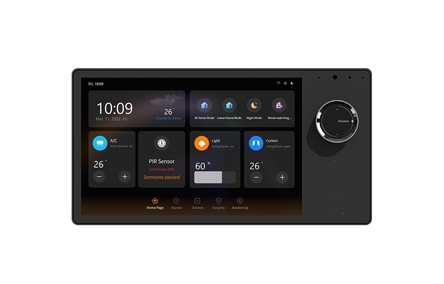 Настенная / Настольная панель 8 дюймов с колесом только WIFI (un-08t8e) – сенсорная встраиваемая панель управления, оборудованная 8'' дисплеем. Работает под управлением ОС Android 8.1. Разрешение дисплея: 1280x800. Для подключения могут использоваться Wi-Fi и Bluetooth.