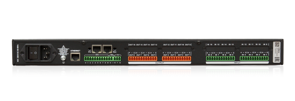 2 – Dante, разъем RJ45 (розетка) 8 – GPIO, клеммный блок 1 – USB, тип micro-B (розетка) 1 – RS-232/485, клеммный блок |