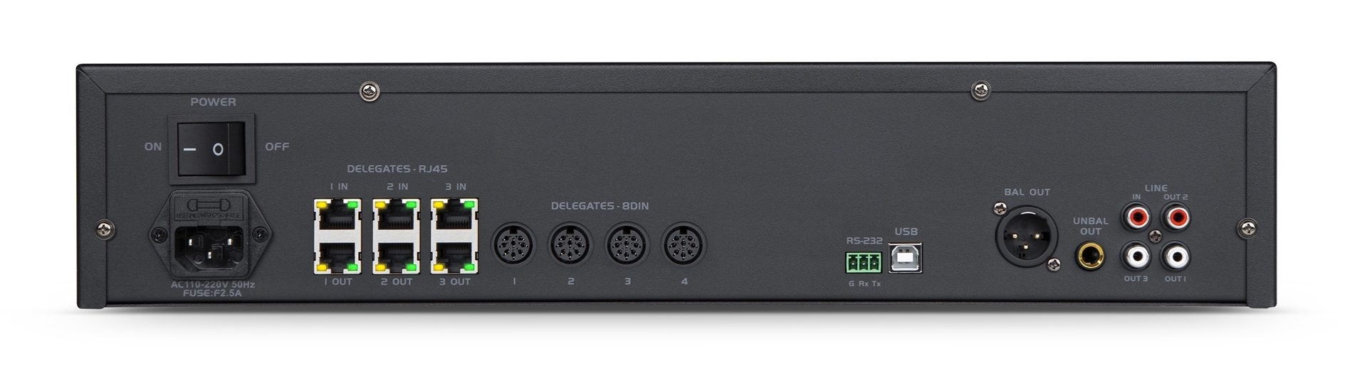 6 каналов интерфейса RJ45 для микрофонов с поддержкой питания и горячего подключения