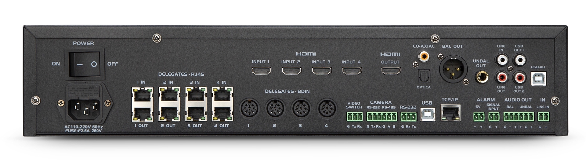 Контроллер для конференц-системы, до 120 пультов, USB-порт для ПК,, поддержка TCP/IP, бесподрывная коммутация 4x1 HDMI