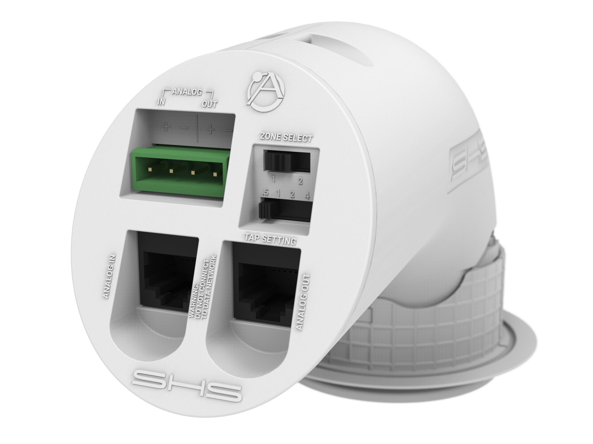 SHS-3T2-HD – комплект из двух широкополосных малозаметных встраиваемых потолочных акустических систем 2,25'' закрытого типа с изогнутыми туннельными волноводами и наборами акустических линз для регулировки угла раскрытия под высоту подвесного потолка в помещении. Акустические системы имеют отводы мощности 1, 2, 4, 8 Вт при подключении к линии 100 В и 0.5, 1, 2, и 4 Вт при подключении к линии 70 В. Рассчитаны только на врезную установку в плиты фальш-потолков, предполагающих запотолочное пространство не менее 100-110 мм. Оборудованы парными сквозными портами с разъемами Euroblock и RJ45 для каскадного соединения. Цвет белый. Предусматривает покраску или нанесение полиграфического принта под цвет и текстуру поверхности потолка. Соответствует требованиям UL1480.