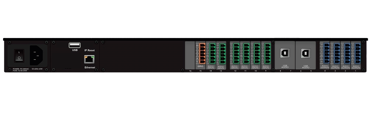 Комплект: DSP-аудиопроцессор, 12 микрофонных/линейных входов, 8 выходов (Euroblock) с функцией HEARCLEAR AEC