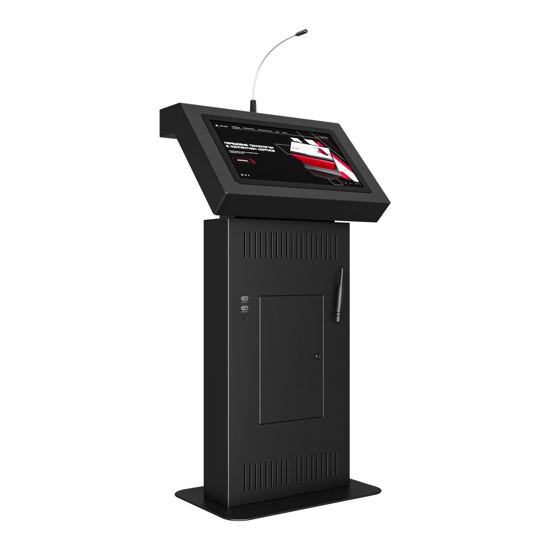 Интерактивная трибуна с дисплеем разрешением 1280х1024 и микрофоном на "гусиной шее", корпус из стали