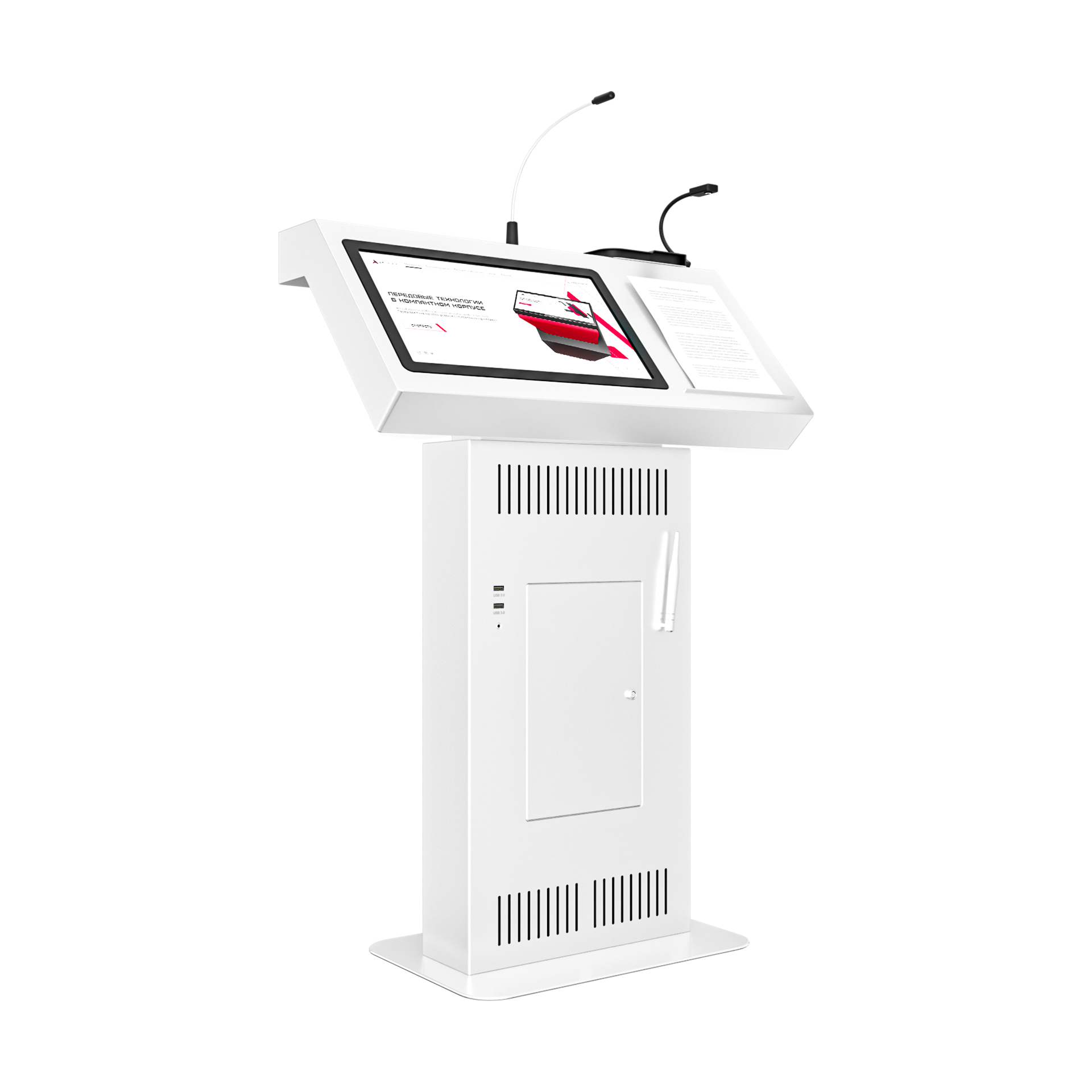 Интерактивная трибуна с 27" дисплеем разрешением 1080p, микрофоном на "гусиной шее" и документ-камерой, корпус из стали