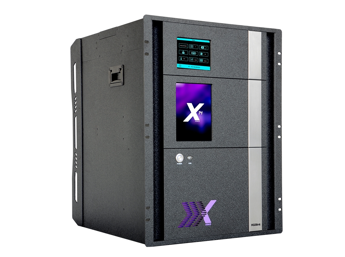 X14 – шасси модульного матричного коммутатора, видеопроцессор и контроллер видеостены. Есть 13 слотов для модулей ввода, 10 слотов для модулей вывода и 1 слот для модуля управления. Максимальное число входов/выходов: 52x40. Максимальное разрешение: 4K60. Позволяет создавать рабочее пространство разрешением 165 Мп и настраивать до 160 слоев видео. В зависимости от установленных модулей может быть оборудован интерфейсами: SDI, HDMI, DVI, DisplayPort и H.264. Управление осуществляется с приложения XPOSE или решений сторонних производителей.